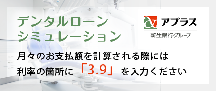 当院では、新生銀行グループ「アプラス」のデンタルローン(3.9%)を取り扱っております。