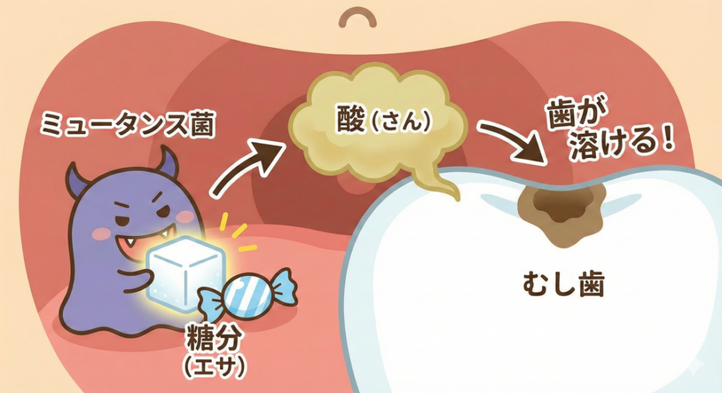 なぜ、甘いものを食べるとむし歯になるの?