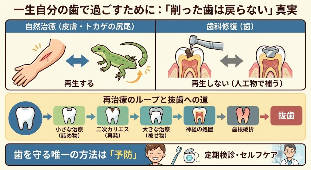 一生自分の歯で過ごすために:知っておくべき「削った歯は戻らない」という真実