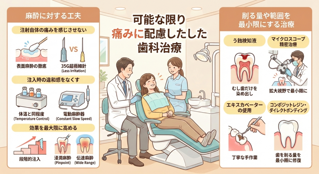 可能な限り痛みに配慮した歯科治療を行っています