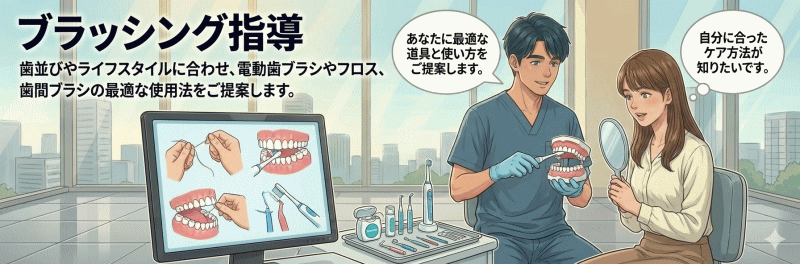 歯並びやライフスタイルに合わせ、電動歯ブラシやフロス、歯間ブラシの最適な使用法をご提案します。