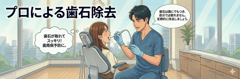 歯石は誰にでもつき、歯肉を圧迫するなどして、歯周病を引き起こす原因の一つとなります。自分で取り除くことは困難ですので、定期的に歯医者さんに歯石を取り除いてもらいましょう。